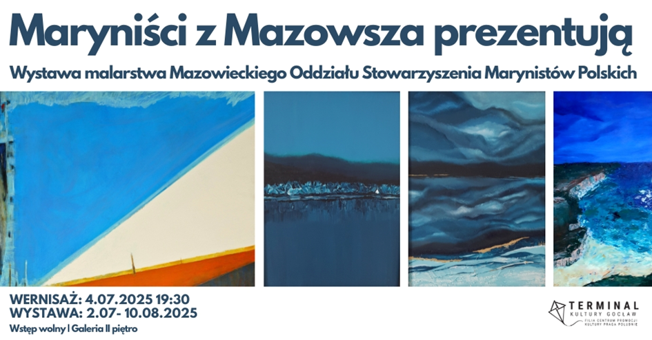 Mazowiecki Oddział Stowarzyszenia Marynistów Polskich zaprasza na wystawę malarstwa pt. „Maryniści z Mazowsza prezentują”, która odbędzie się w Terminalu Kultury Gocław przy ul. Jana Nowaka-Jeziorańskiego 24 w Warszawie. Wernisaż wystawy – 4.07. 2025 r.
